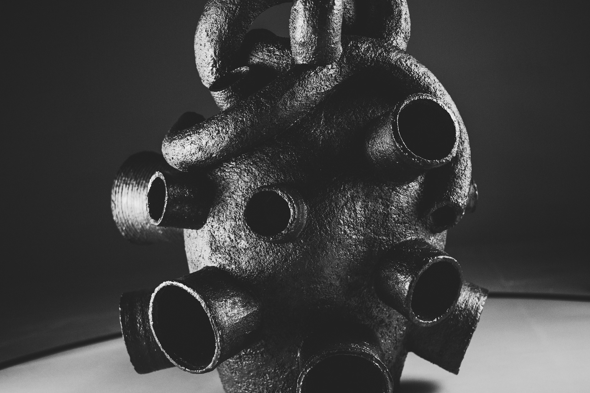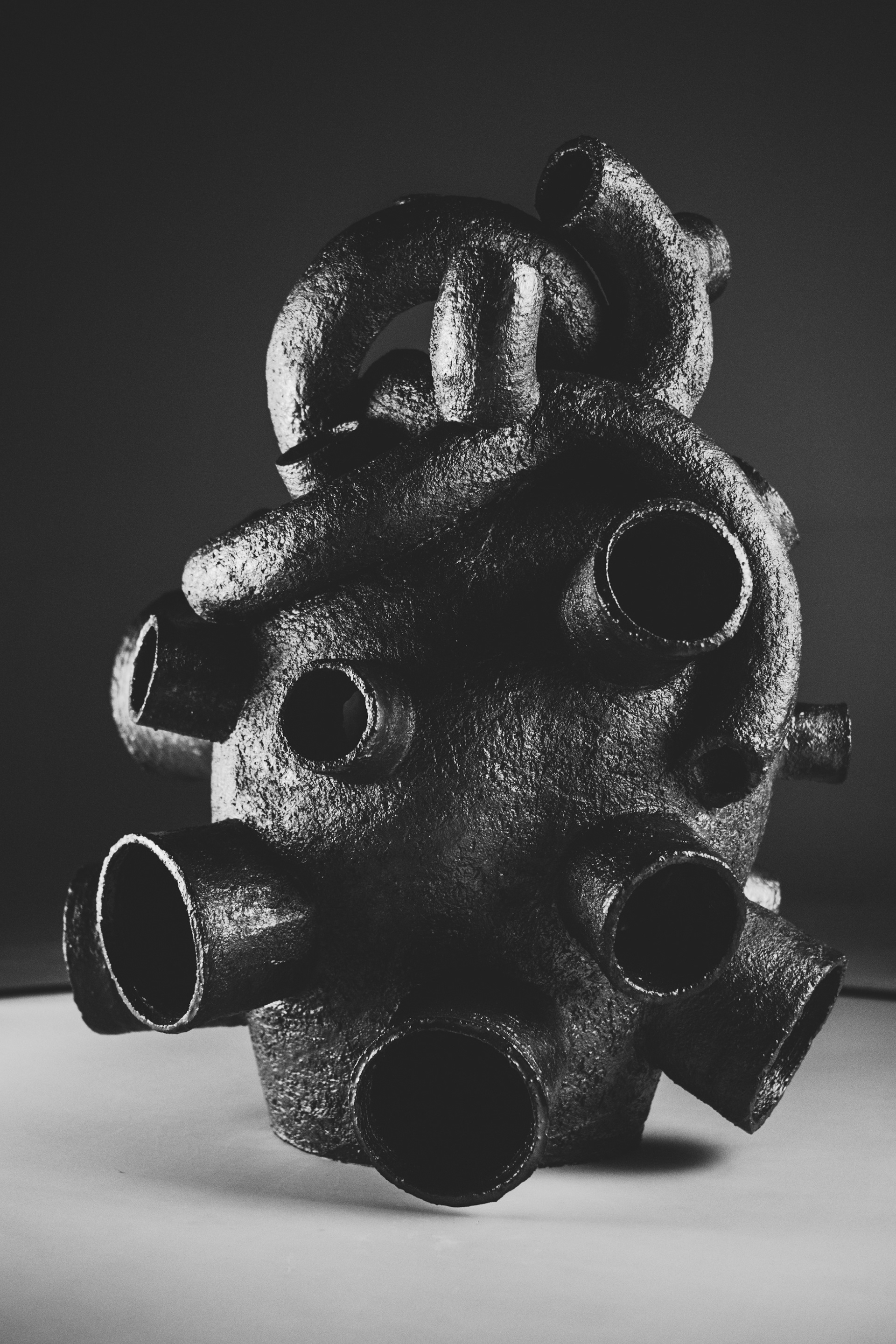 Esta pieza se originó a partir de la producción de “Empatía”. la cual consiste en un corazón que reacciona al ritmo cardíaco del interactor y se expande y contrae en relación. Decidí continuar con la exploración formal del corazón y con los medios de interacción entre pieza e interactor moviendome del tacto en el caso de empatía hacia el sonido. la pieza representa a un cuerpo independiente, separado del interactor.